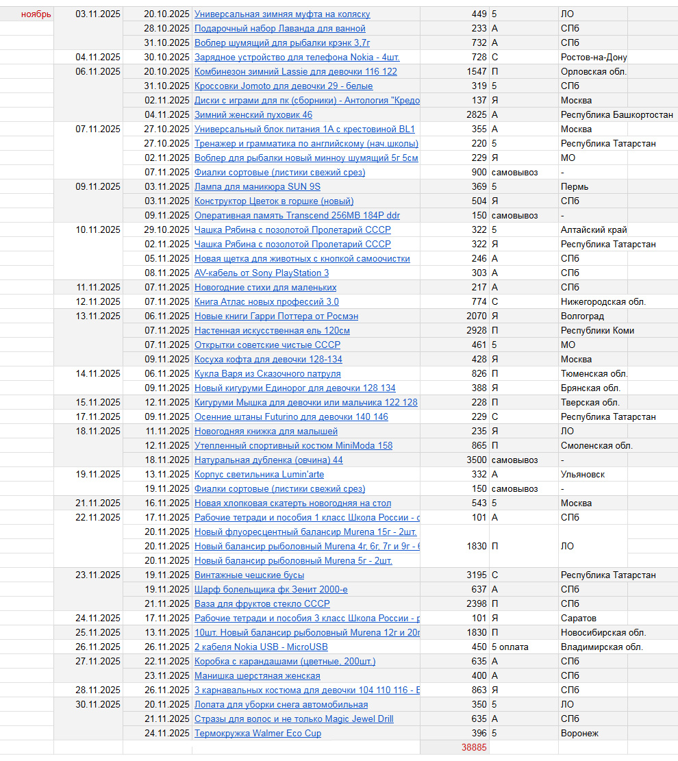 Итак... в ноябре у меня было 49 продаж. Средняя стоимость одной продажи почти 800р.