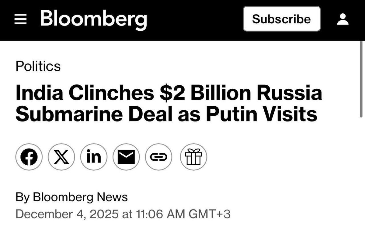 ⚡️ Индия арендует атомную подлодку у России за $2 млрд Соглашение о десятилетней аренде завершено после долгих переговоров. Новая подлодка российского производства будет передана Индии в течение двух лет. Субмарина будет использоваться исключительно для учебных целей, а не для боевых операций. Ранее, в 2021 году, Индия уже возвращала арендованную у России атомную подлодку. МемИнформ. Подписаться.