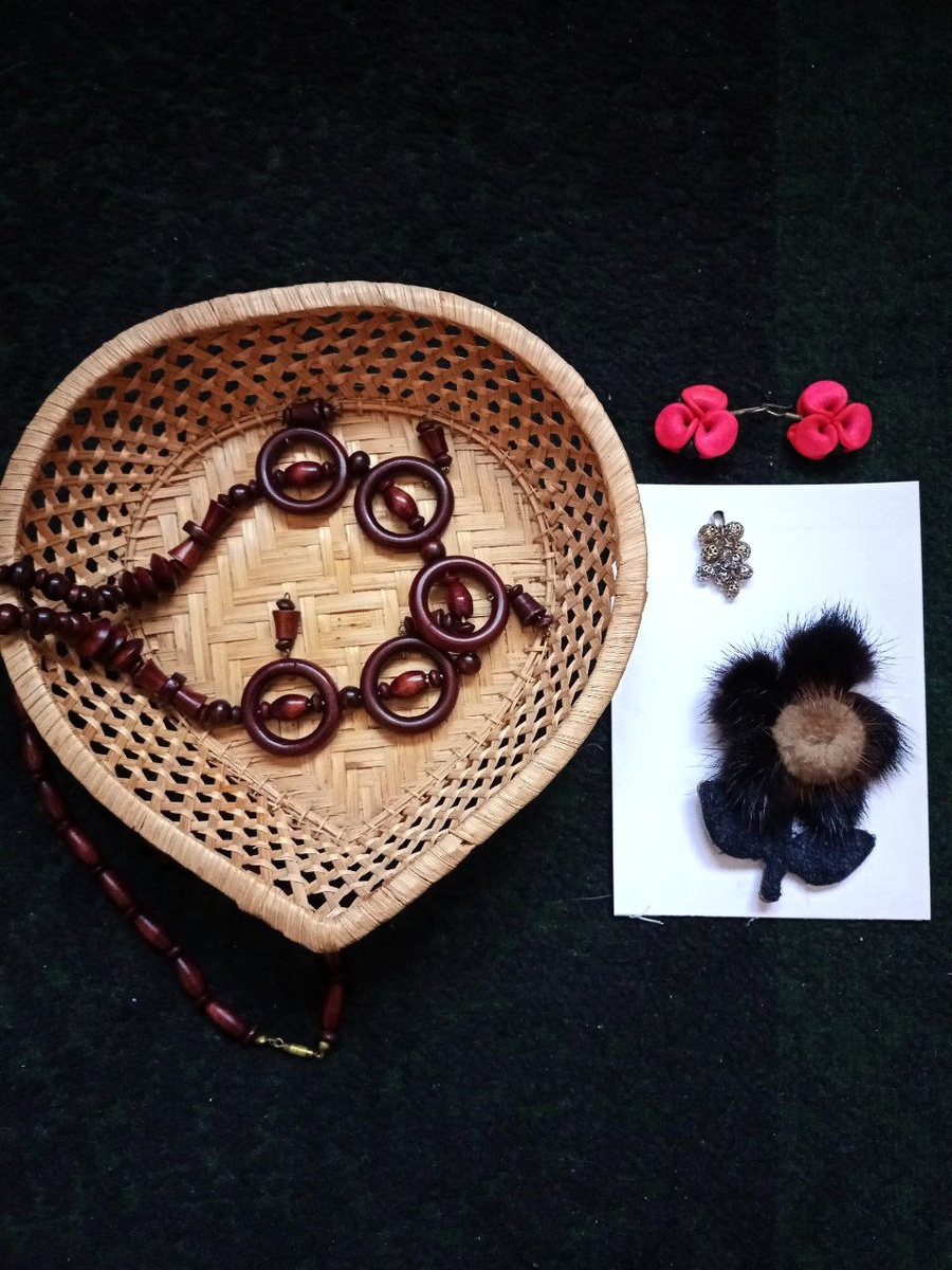 Отдам даром кулон, серьги, бусы, брошь, плетёнку.