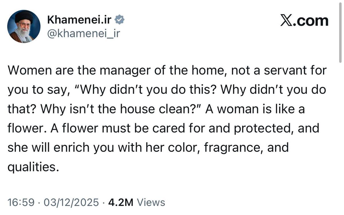 ‘A woman is like a flower, must be cared for and protected’ — Iran’s Supreme Leader Khamenei reminds us of important things ‘Women are managers — not servants’