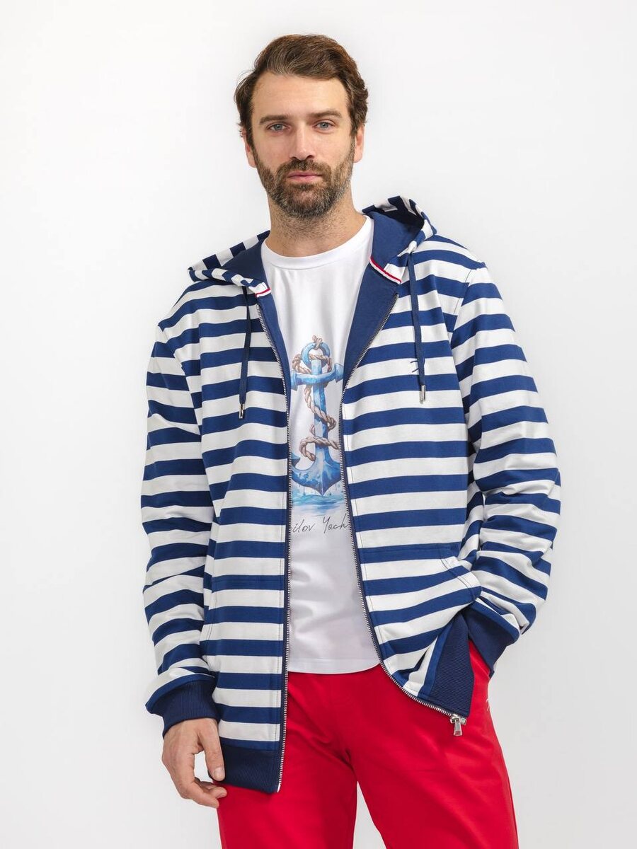 Универсальная мужская полосатая толстовка на молнии с капюшоном, дополненная нашивкой с логотипом бренда, которую можно носить хоть круглый год, составляя разные образы. Заказывайте онлайн или приходите в наши оффлайн магазины.