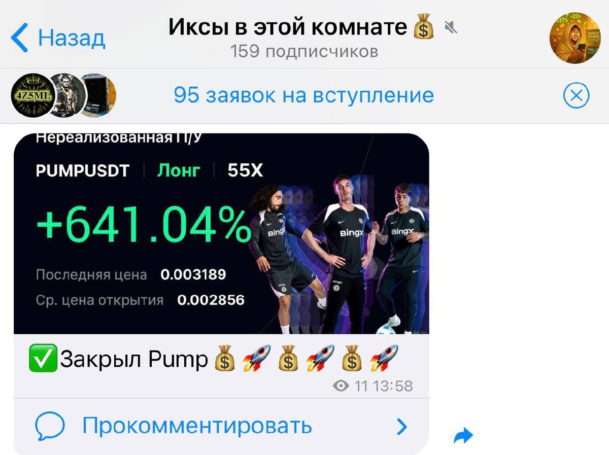 Если что у нас есть бесплатный канал с ежедневными профитными сделками от моего партнёра