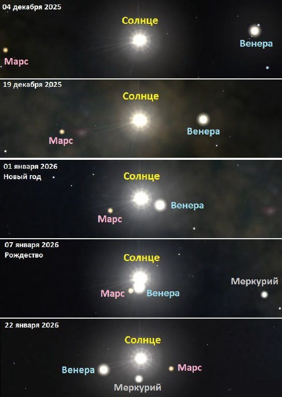 В январе жители Земли станут свидетелями редкого астрономического явления — тесного сближения трех планет. Подобное явление не наблюдалось пять лет назад. Меркурий, Венера и Марс выстроятся в ряд 7 января, а через две недели сформируют фигуру, напоминающую космический ромб. В следующий раз подобное астрономическое шоу повторится лишь в 2038 году. Для наблюдения необычного небесного представления не потребуется специальное оборудование. Оптимальное время для наблюдений — утренние часы до восхода солнца.