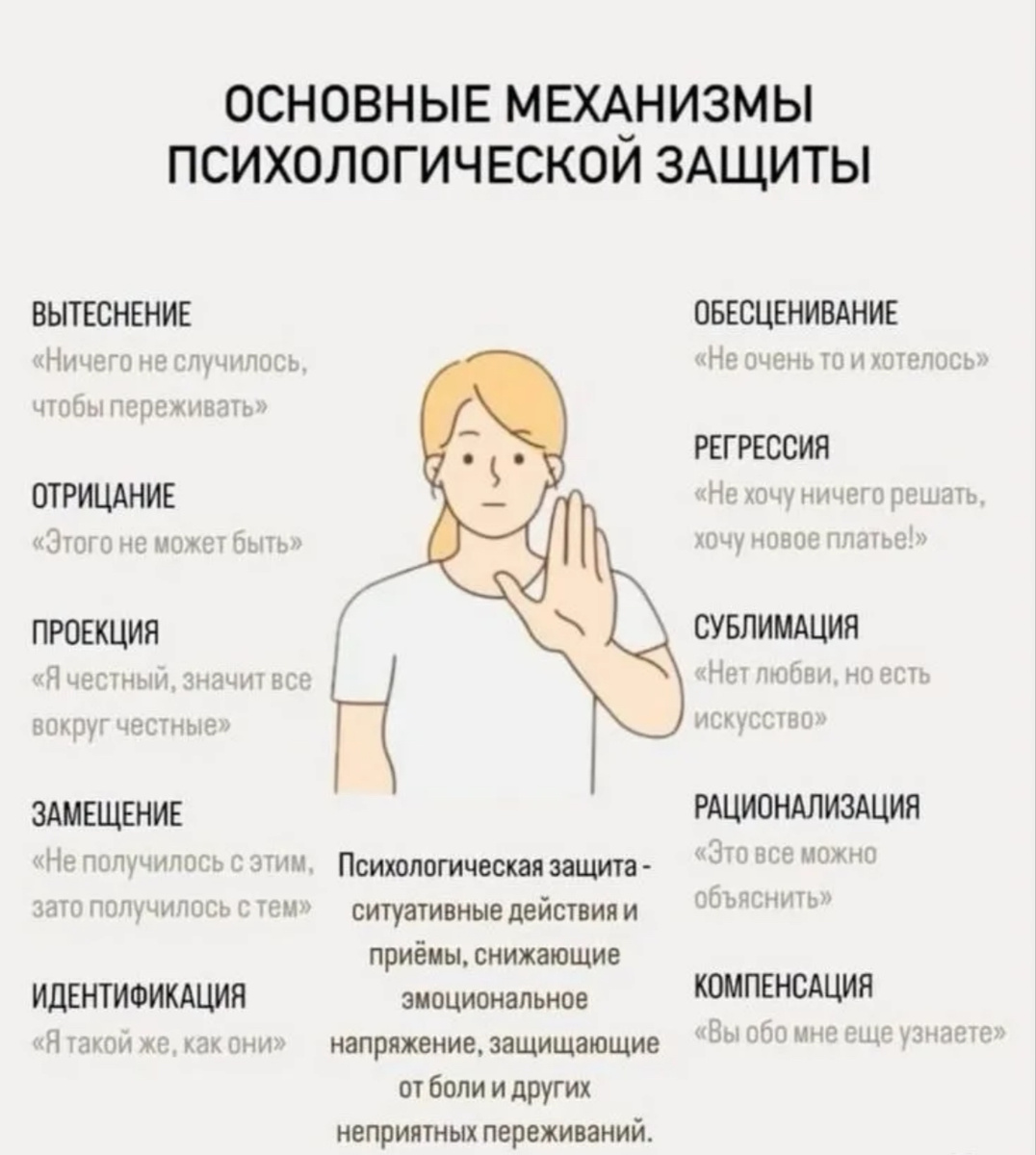 20. Подавление — в этом случае человек избегает вызывающих негативные переживания (тревогу, страх, стыд) мыслей, стараясь не думать о них.