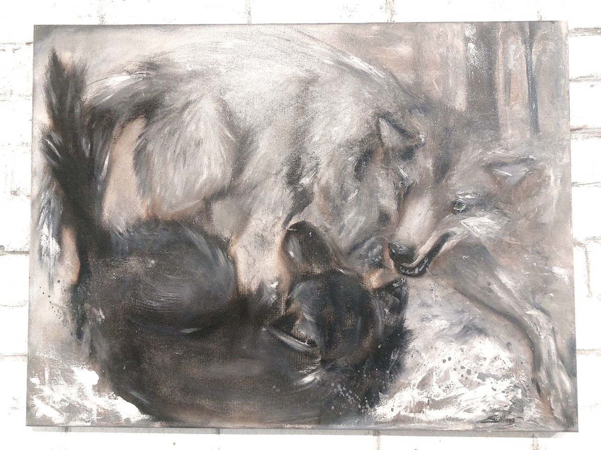 Картина "Волк, которого кормишь" в наличии 50×70 (масло/холст, покрыта лаком) Может стать хорошим подарком близким или коллегам к Новому году!