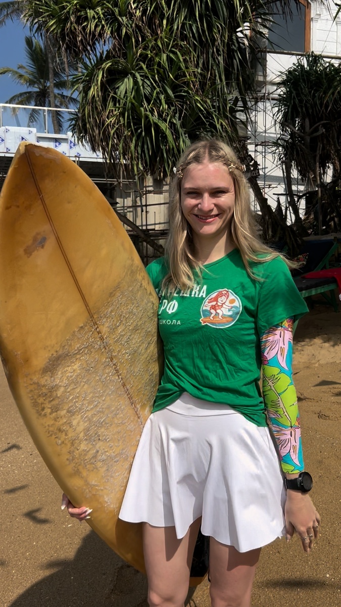 Сегодня был самый удачный и спокойный день для отработки баланс элементов в океане. Волны были слабые, но это не значит, что тренировки по серфингу отменяются, ведь можно оттачивать своё мастерство и на пене. Я сегодня впервые встала в стойку на голове и немного проехала. Вы бы знали, как это было страшно, но потом я ещё раз это повторила и у меня так же всё получилось, единственное, что я поняла, это нужно чаще качать свой пресс, чтобы точно никуда не заваливаться и ехать ровно по волне. Меня поразило, что я сделала свои фирменные комбинации из трюков сидячий утку и дракона. Самое неожиданное для меня открытие, это было, когда у меня получилось сделать бодивериал, это когда стоя не в своей стойке в прыжке меняешь ноги в свою стойку. Честно я безумно рада, что оказалась на Шри-Ланке, ведь я могу продолжить свою тему баланса не только на суше, но и на волне. P.S. Просто делайте то, что любите и тогда вы будите самым уникальным человеком на планете.