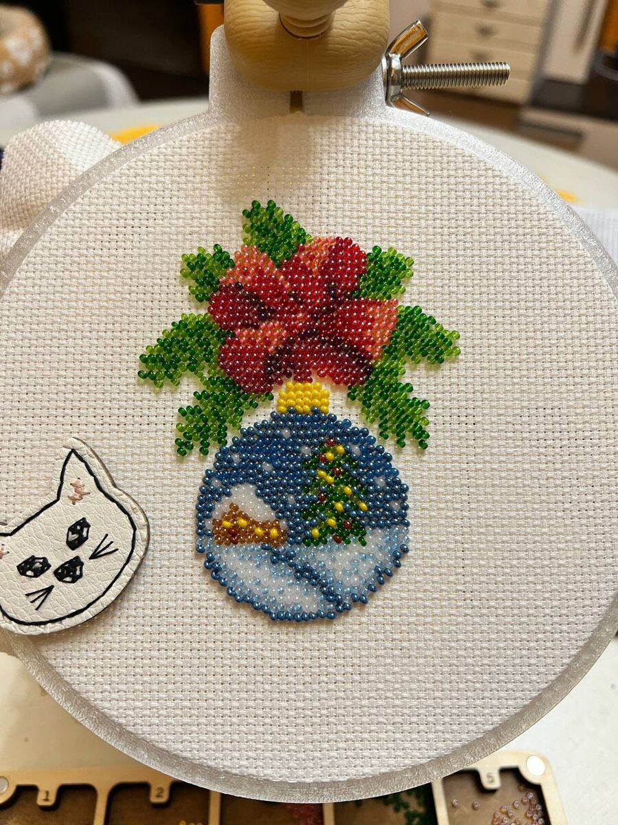 Продолжаю трудиться в своей «мастерской». (Вы же понимаете, что «мастерская» - это угол дивана, коробка с бисером и надежда успеть до НГ? 😄) Работа идёт, конечно, не так, как у эльфов Санты, а как у человека, у которого есть ещё и другая жизнь. Но очередной шарик готов! Вышит бисером, оформлен и мечтает отправиться из моих рук в чей-то уютный дом. Главное в такой «мастерской» - не скорость, а удовольствие от процесса. Согласны? #belka_рукодельница #рукоделие #хобби #вышивкабисером #новогоднийдекор #своимируками #творческийпроцесс #уют #маленькиерадости #зимниевечера