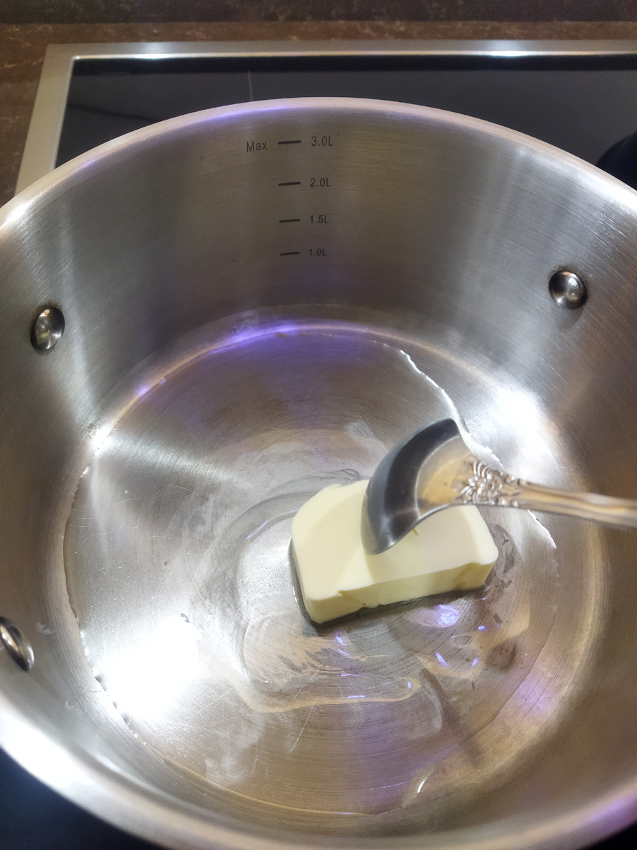 1. В сотейнике на среднем огне растопите 50 г сливочного масла, предварительно налив на дно 2 столовых ложки растительного масла.