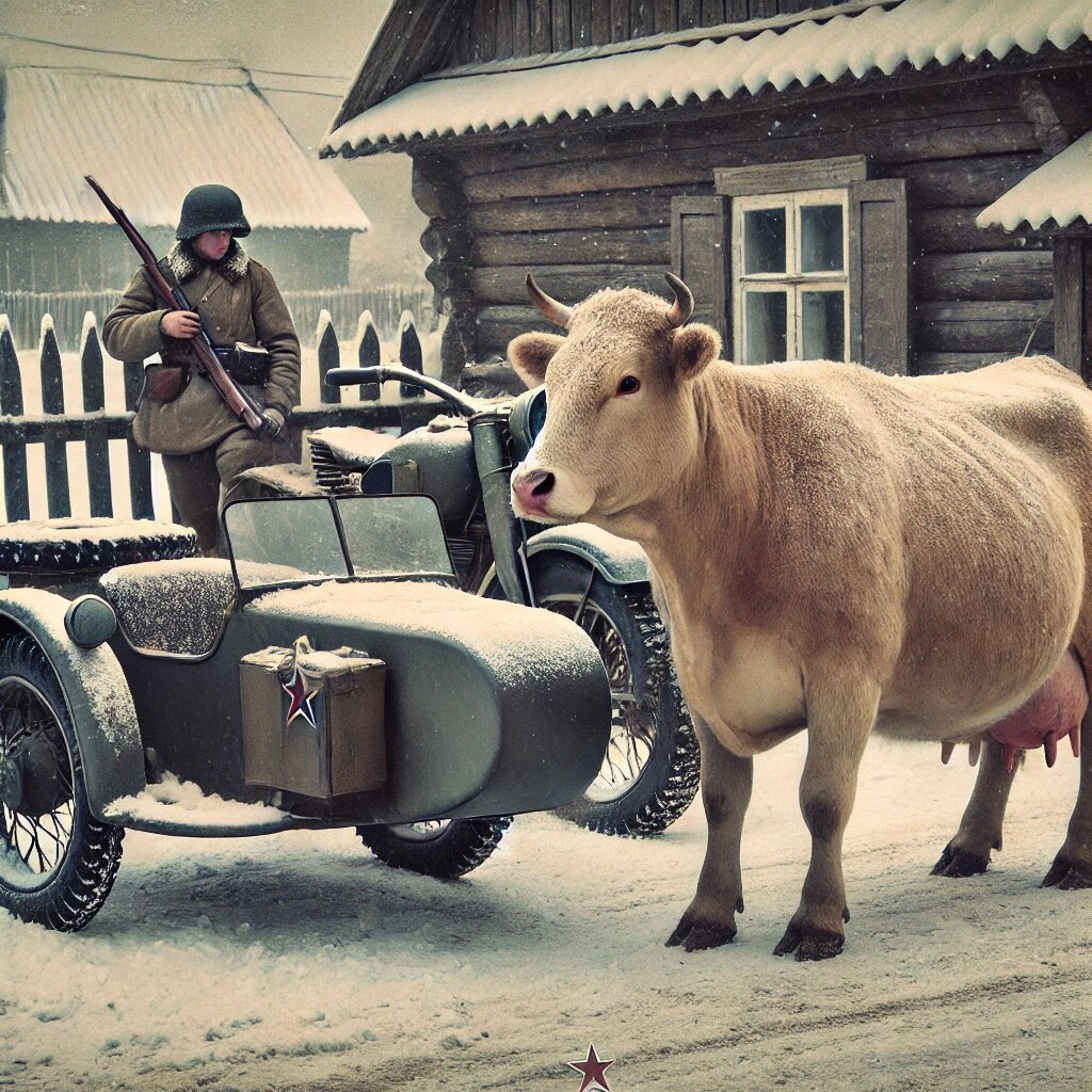 Как разведчики угнали мотоцикл из-под носа врага, подведя к нему корову, чтобы заглушить шум