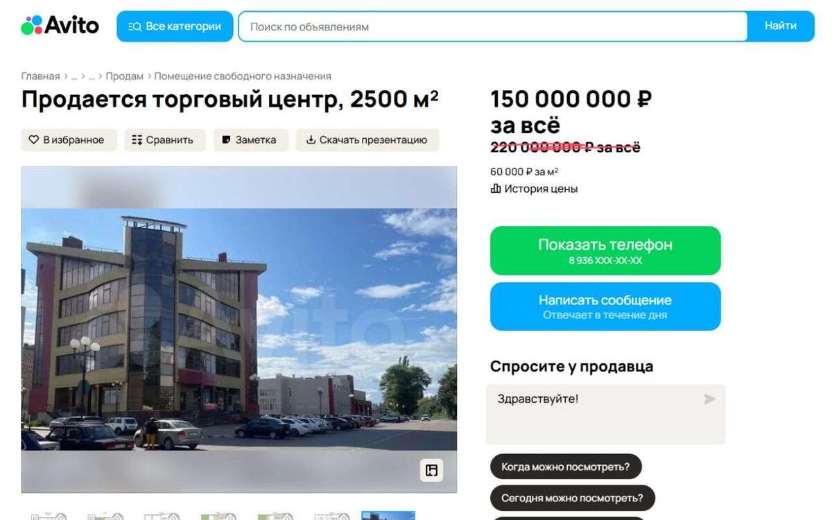 С 250 млн до 150 млн подешевел за три месяца торговый центр в Анне Воронежской области