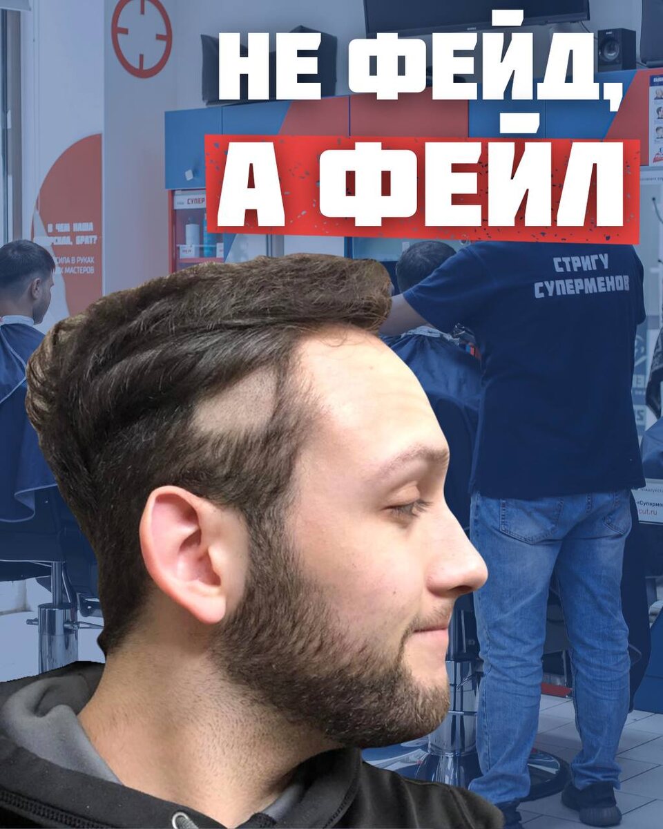 💥 НЕ ФЕЙД, А ФЕЙЛ Каждый раз, когда кто-то думает: «Да ладно, сам подровняю…» — где-то грустит один барбер. И появляется вот ЭТО: горшки, ямы, неожиданные залысины. Всё включено! 🤣 Хочешь фейд — приходи к барберам. Хочешь фейл — ну… ты видел фото 😉 💈 В «Супермен» сделаем всё чётко и без сюрпризов.