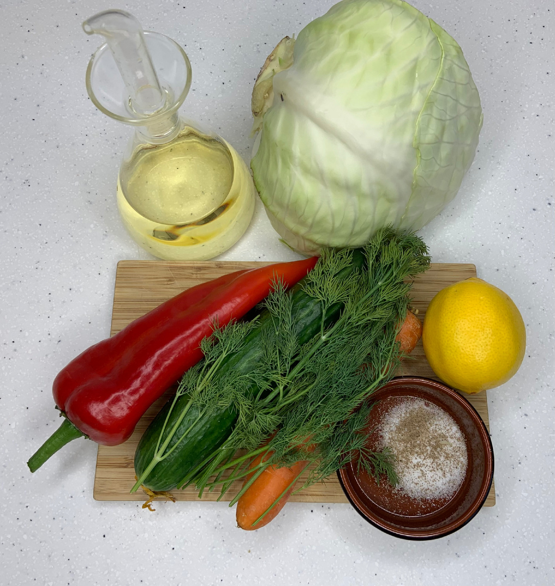 И снова, здравствуйте 2.0! Наконец руки дошли до рецептов, надеюсь, ресурсов на ведение блога у меня теперь будет хватать. Надеюсь... Салат Витаминный, думаю, знаком многим. Но вдруг вы забыли про него или вообще не знали? А я вам сейчас про него расскажу. Ничего особенного, продукты все доступные, зато вкусно и полезно. Капуста белокочанная, морковь, огурец, перец-я люблю Рамиро, он насыщенней что ли, и укроп с лимонной заправкой. Соус должен быть кисло-сладким, я предпочитаю что бы кислоты и сладости было пополам. Для сладости я использую сахарозаменитель, вместо меда или сахара. Вы можете выбрать любой вариант. Салат вкусен когда постоит, поэтому я его готовлю утром на ужин. Пропорции даны на большую миску, так что регулируйте сами количество ингредиентов. Погнали... Вам понадобится: Капуста белокочанная - 1/2 кочана огурец среднеплодный - 2/3 морковь сырая - 1 шт перец Рамиро - 1 шт укроп - 3-4 веточки лимон кислый - 1/2 шт масло растительное - около 30 мл сахарозаменитель (экви