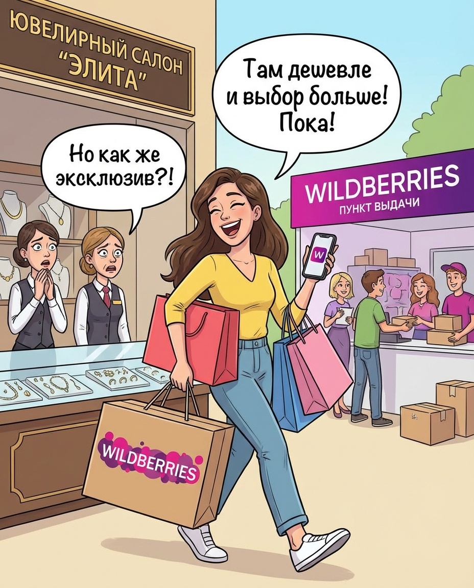 Маркетплейсы уже стали «дефолтной» витриной для украшений: по оценкам аналитиков, доля Ozon и Wildberries в онлайн-продажах ювелирки превышает четверть рынка, а темпы роста двузначные из года в год. Клиент ушёл туда не из вредности, а потому что там быстрее, привычнее и «всё в телефоне» — и вернуть его можно только предложив нечто сопоставимое по удобству, но более сильное по сервису и эмоциям.