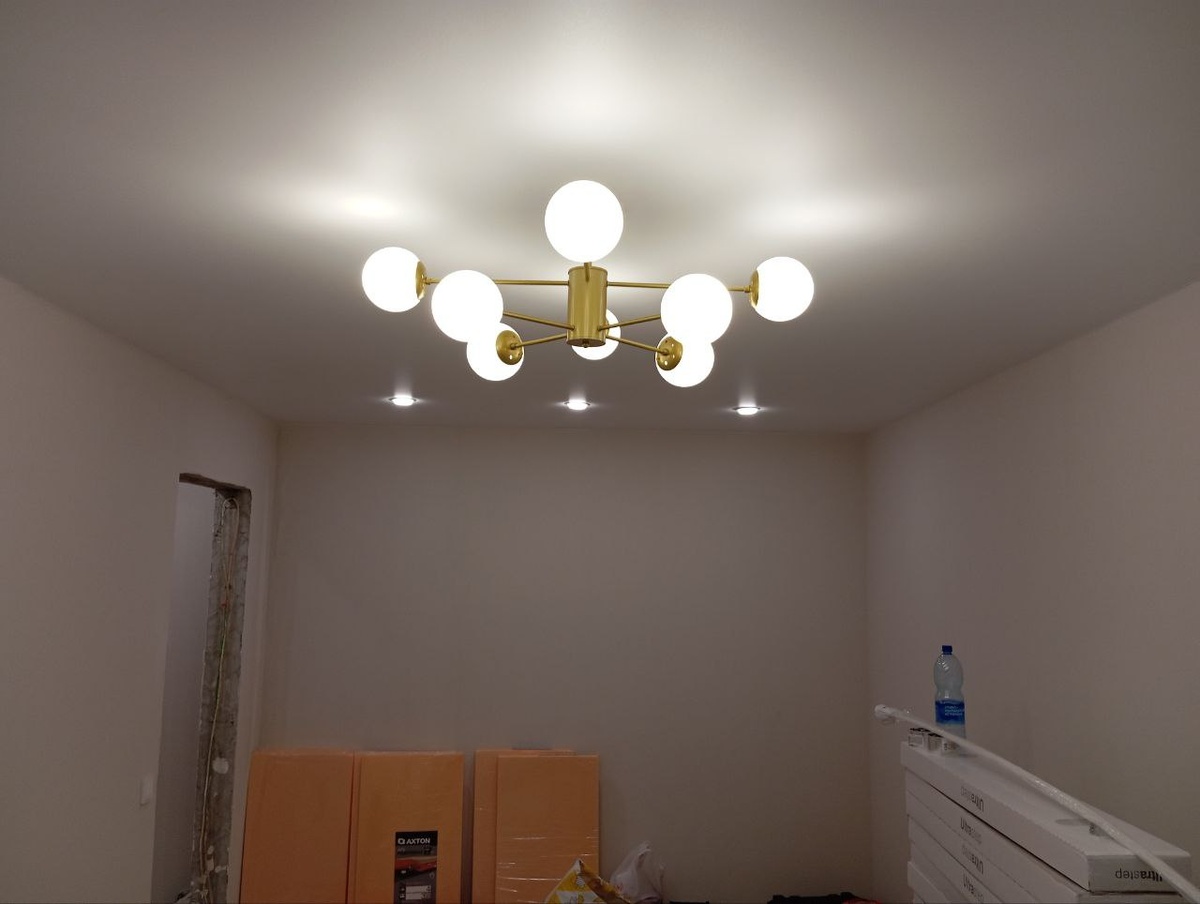 С трудом, но сделали. Надо сказать, по моему опыту и общению с разными людьми в этой сфере, что большинство людей даже не обратят внимание на косяки, особенно на приемке 🫣 Далеко не все прорабы увидят косяки, возможно и не хотят видеть. Их задача сдать объект побыстрее. Наша - вам рассказать, поэтому пишите, спрашивайте Какой материал нужен для освещения? - люстра на кухню 2674 рублей - люстра в комнату 7 968 рублей - точечные светильники 1 640 рублей - лампочки в точечные светильники 1 284 рублей 2 упаковки 20 шт. - лампочки 8 шт в комнату =6*140+2*145 = 1130 рублей Итого материал: 2 674 +7 968+1 130+1 640+1 284 = 14 696 рублей Итого этот этап: 77 508 (установка потолка) + 1 000 (сборка люстры) + 14 696 (лампочки и лючстры) = 93 204 рублей. Весь ремонт на Чертановской: Итого работы: 603 030 + 78 508 = 681 538 рублей. Итого материалы: 366 958 + 14 696 = 381 654 рублей Итого весь ремонт: 1 063 192 рублей. По всем вопросам по ремонту, у меня в телеграмм канале: