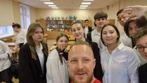 Амбассадор DonorSeach вместе со школьниками после проведения лекции. Из архива DonorSearch.