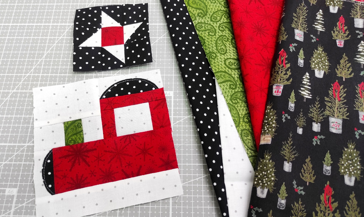 Ну такое себе… А если добавить красный? Лучше не стало, стало тревожнее. Но появляется зелёный – и все встаёт на свои места! Согласны?🖤🤍❤️💚 Сейчас в моем Пэчворк Клубе мы шьём новогоднее панно-адвент «Зимние каникулы» и вот моя подборка тканей. Началось всё с любви. В ткань с ёлочками я влюбилась с первого взгляда. Но ее было всего 70 см. «Возьму на бордюр! – решила я. – Паровозик будет ехать в заснеженном ночном лесу». Там же, на сайте тканей, был заказан отрез черного хлопка в белый горох. Выбранный красный в жизни оказался другим, не подошел, пришлось обратиться к своим запасам. Белая ткань в серый горошек – для фона. Потом нашёлся красный со снежинками. Самым последним присоединился зелёный. И эта не очевидная для Нового года, немного скандинавская цветовая гамма мне очень понравилась! Итак, моя логика, которой я часто руководствуюсь, выбирая цвета для проекта: ткань-любовь; ткань-друг (повторяющая ткань-любовь по цвету и стилю); ткань светлая; ткань тёмная; ткань яркая / цветн