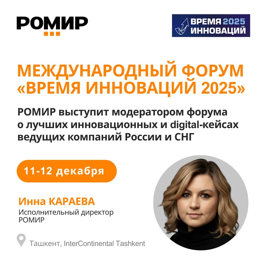 РОМИР едет в Узбекистан на форум «Время инноваций 2025» 11 и 12 декабря исполнительный директор РОМИР Инна Караева выступит модератором международного форума «Время инноваций» в Ташкенте. Мы разберем лучшие инновационные и digital-кейсы ведущих компаний России и СНГ. Тема форума этого года – «Из России с любовью». В программе 5 треков: 🔸 «Иннобиз» 🔸 «Инносреда» 🔸 «Инностарт» 🔸 «Кибербезопасность: защити себя сам» 🔸 «Биотех» Подробнее по ссылке → #анонс #ВремяИнноваций2025 #Узбекистан @m_romir
