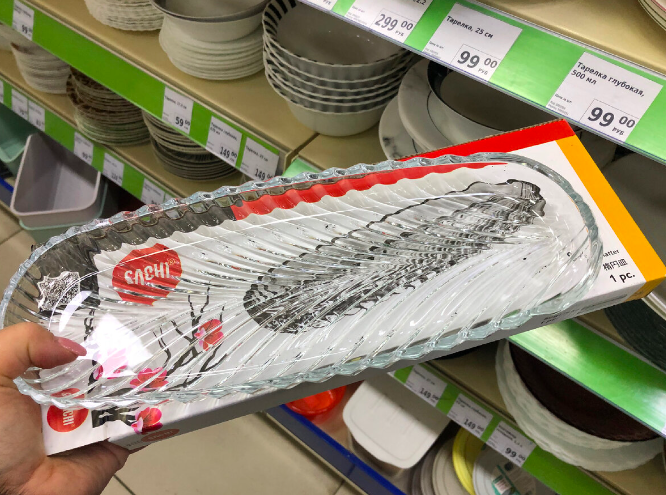 В магазине Фикс Прайс вновь крупное пополнение ассортимента, и на этот раз особенно порадовал отдел посуды. Решила внимательно пройтись по полкам и показать самые интересные находки. Товаров действительно очень много, выбор разнообразный — от самых простых кухонных мелочей до довольно эффектных сервировочных вещей. Начну обзор с более крупных предметов, которые сразу бросаются в глаза. В продаже представлено сервировочное блюдо из стекла, предназначенное для подачи рыбы. Оно довольно вытянутое — размер составляет 33 на 13 сантиметров. Изготовлено изделие в Иране, стекло плотное, прозрачное, аккуратно выполненное, что делает такое блюдо универсальным для праздничного стола. 249 руб Рядом с ним нашла сервировочную тарелку торговой марки «Пашабахче». Модель называется «Хейз». Размер у тарелки довольно удобный — 33 на 25 сантиметров. Производится она на заводе в Нижегородской области, в городе Бор. Изделие выполнено из качественного стекла и подойдет для подачи горячих и холодных блюд. С