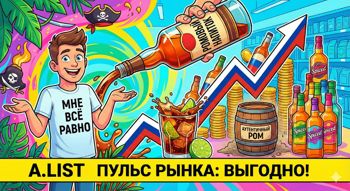 В прошлом материале A.LIST мы разобрали, как понятный сценарий потребления и доступность стали ракетным топливом для категории джин. Успех этой модели заставил нас обратить внимание на еще одного «героя роста», которого не устают хвалить в отчетах — ром. С виду тренд тот же: импортозамещение, бодрые цифры. Но если в джине мы всё-таки говорим о технологии, то в роме статистика маскирует нюанс, от которого у пуристов дергается глаз. Самое показательное здесь — олимпийское спокойствие покупателя. Там, где в виски уже начались бы истерика, бойкот и лекции про «аутентичность», в роме потребитель просто пожимает плечами и несет бутылку на кассу. Даже если на этикетке вместо гордого «Ром» значится канцелярское «Напиток спиртной ромовый». И это, коллеги, не маргинальная история, а основа рынка сегодня. Магия цифр и «пряный» переворот Данные продаж говорят красноречивее любых маркетинговых легенд. В ТОП-15 брендов, которые держат «мертвой хваткой» 86% рынка, произошла тихая революция. Более по