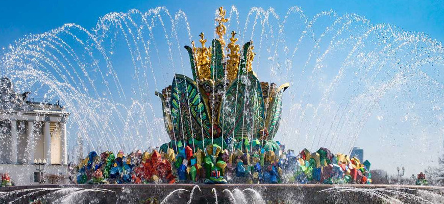 Самый знаменитый фонтан столицы. Архитектурное достояние, возведённое по мотивам сборника сказов Павла Бажова «Малахитовая шкатулка». Фонтан, обрамлённый мозаикой, работы мастерской Академии художеств СССР. Место притяжения на ВДНХ. В 1954 году широкая публика столицы смогла по достоинству оценить новое произведение искусства. Им стала работа архитектора Константина Топуридзе и скульптора Прокопия Добрынина. Строительство фонтана заняло целых четыре года. А вот создание самого проекта продлилось куда больше. Так различные задумки отрабатывались на более мелких фонтанах. Но все они не вызывали особый восторг. Дело случая всё изменило. С экранизацией фильма «Каменный цветок» в 1946 году родилась идея и архитектурного творения. Небывалый успех фильма, снятого по мотивам рассказа из «Малахитовой шкатулки», подтвердил теорию о том, что фонтан станет всемирно известным. Так и произошло. Венцом фонтана выступил огромный бетонный цветок, украшенный разноцветной смальтой. По кругу возвышались