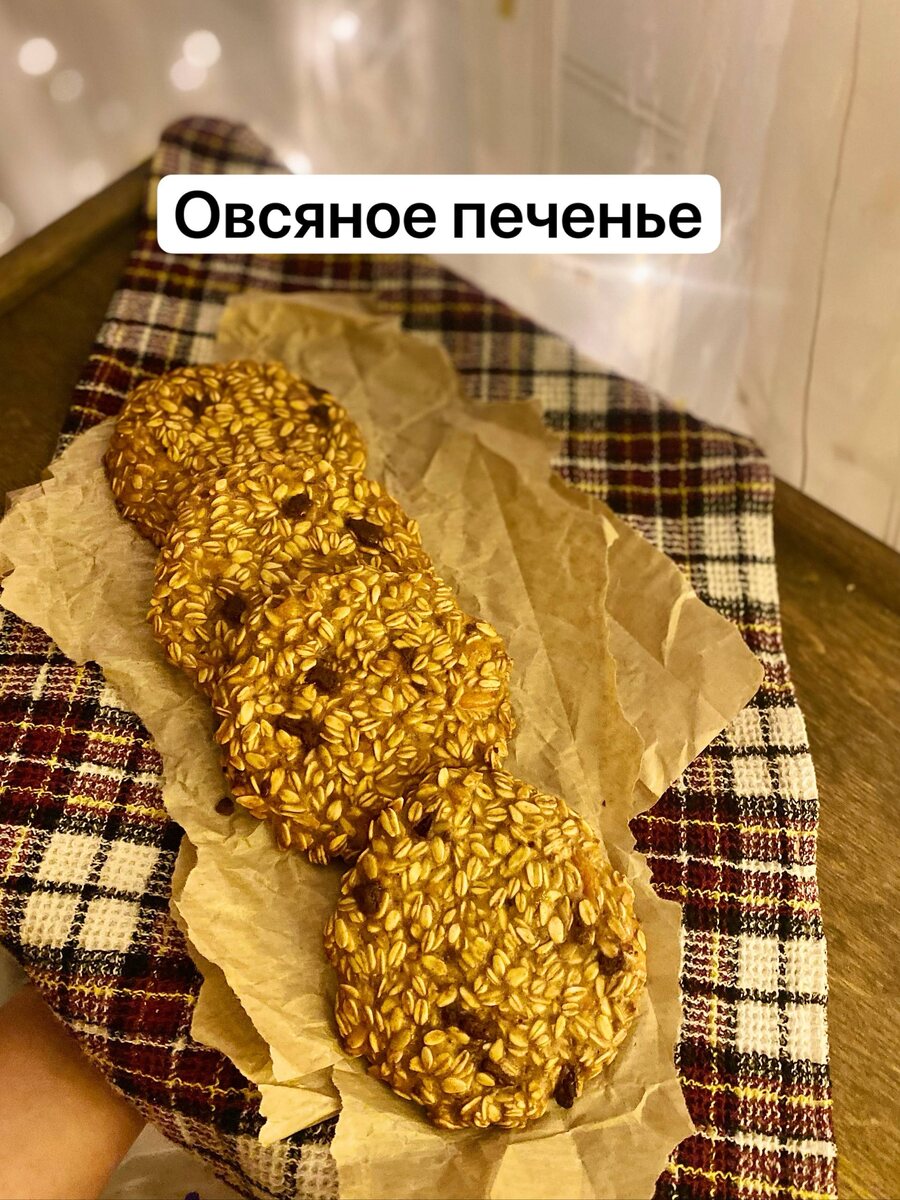 Овсяное печенье 🍪 1️⃣ Взболтать 2 яйца с сахаром (1,5 ч.л. или сах.замом по вкусу) 2️⃣ Добавить 120гр овсянки долгой варки и 40 гр муки 3️⃣ Перемешать. По вкусу ванилин + разрыхлитель и немного корицы 4️⃣ Мелко порезать курагу и половинку маленькой шоколадки 5️⃣ Всё соединить и оставить на 10 мин, чтобы влага впиталась в крупу 6️⃣ Мокрыми руками сформировать шарики и выложить на силиконовый коврик. Придавить 7️⃣ Отправить в духовку разогретую до 180° на 10-20 мин (нужно следить за степенью прожарки шапочки, я люблю хрустящее печенье, поэтому держала долго)
