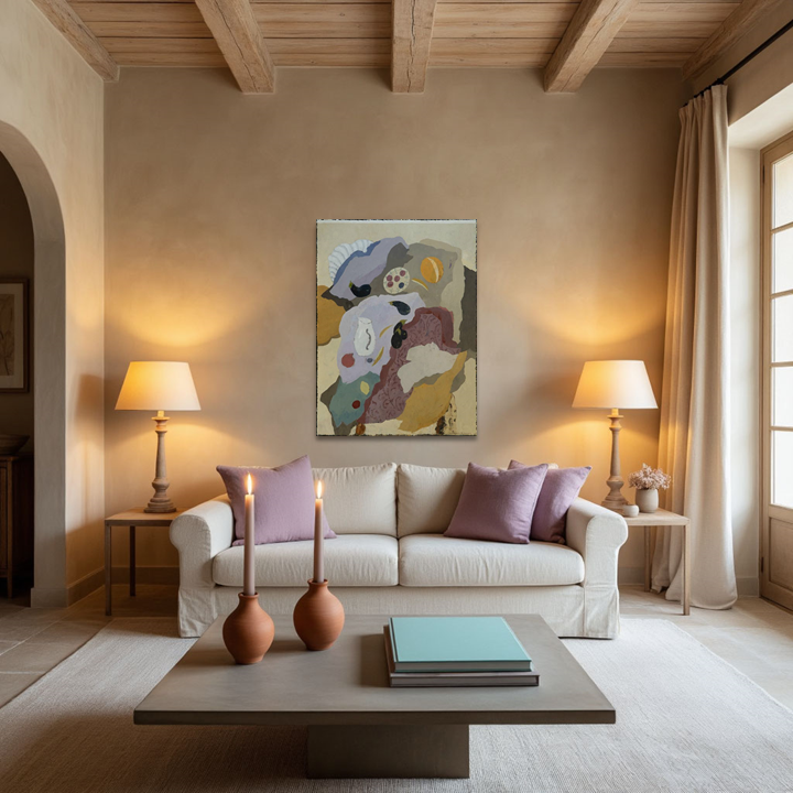 - Задаёт цветовую схему. Не вам подбирать декор под картину, а ей — расставлять акценты. Один холст в терракотовых, сиреневых или приглушённо-золотых тонах делает весь остальной декор (свечи, текстиль, даже упаковку подарков) осмысленным и стильным.
