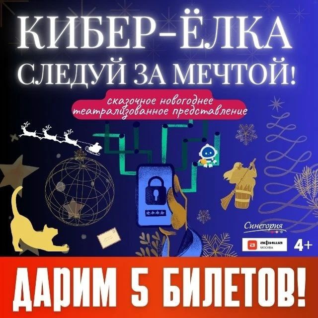 ❄️Новогодняя сказка ждет тебя! 📣Внимание, внимание! Уважаемые родители и ребята, спешим поделиться радостной новостью! Наш партнер, учреждение дополнительного образования Центра внешкольной работы «Синегория», объявляет увлекательный розыгрыш 5 билетов на потрясающее шоу – Новогоднюю Кибер-Ёлку.🫐 🍭Что такое «Кибер-Ёлка»? Это уникальная постановка, наполненная яркими спецэффектами, современными технологиями и атмосферой настоящего праздника. Представление обещает стать настоящим событием для всей семьи, подарив массу положительных эмоций и незабываемых впечатлений вашим детям. 🍭Как принять участие? Все просто и доступно каждому! Подробности участия можно узнать прямо сейчас в официальном канале нашего партнера в Telegram. Не пропустите свой шанс подарить ребенку сказочный Новый Год! ➡️Узнать больше и присоединиться к розыгрышу можно тут: https://max.ru/id7731263128_gos/AZrji7FaaZo 🎁Успейте воспользоваться возможностью попасть на самое современное и захватывающее праздничное