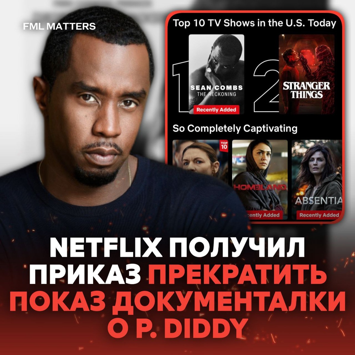 В ответ на пост 🤬 NETFLIX ПРИКАЗАЛИ ОСТАНОВИТЬ ФИЛЬМ ПРО P. DIDDY! Адвокаты Дидди потребовали от Netflix снять с показа новый документальный сериал. По их словам, в фильме используют украденные видео и частные разговоры. Netflix отказался это делать, заявив, что все материалы — законные. Теперь дело может дойти до суда. Несмотря на скандал, документалка о Дидди стала мировым хитом — она возглавила топ Netflix, обогнав «Очень странные дела». Останавливаем? 🤔 💀 FML MATTERS