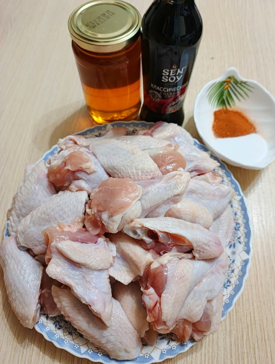 Друзья, всем привет! Хорошего зимнего дня и отличного предновогоднего настроения! Ну а те, кто думает что бы такого вкусненького приготовить, присоединяйтесь! Я сегодня буду готовить куриные крылья в духовке. Это блюдо на все случаи жизни, думаю все любят курочку, ну а крылья особенно. Можно готовить как на обед или ужин, так и на праздничный стол! Так что начинаем репетицию блюд к Новогоднему столу. Для приготовления нам понадобится : куриные крылья, соль, паприка, мед, соевый соус, чеснок. Всё это есть у любой хозяйки. Крылья тщательно моем, удаляем нижнюю часть, она не понадобится. Основное крыло делим на две части. На 1 кг крыльев берем 100 мл соевого соуса, 2 ст ложки меда и 2 зубчика чеснока, соль и паприка по вкусу. Перемешиваем все ингредиенты, хорошенько обмазываем крылья и оставляем мариноваться на 2 часа, можно и дольше, будет только вкуснее. Дальше выкладываем крылья на противень, застеленный пергаментом и ставим в духовку , разогретую до 180 градусов на 30 минут.