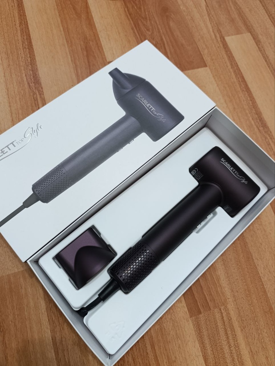 Оставляю свой честный отзыв на фен Scarlett SC-HD70I43, которым пользуюсь уже примерно месяц. Хотела взять что-то компактное, но при этом мощное чтобы можно было и дома нормально волосы сушить, и в поездку с собой брать. В итоге не пожалела вообще. Первое, что заметила, так это то, что фен достаточно легкий, рука не устаёт даже если сушишь волосы долго. У меня волосы средней длины, густые, и обычно сушка занимала минут 15-20, а с этим феном укладываюсь максимум за 10. Поток воздуха мощный, чувствуется сразу, но при этом не пересушивает волосы. Видимо, ионизация действительно работает, у меня после сушки волосы мягкие, не пушатся и выглядят более гладкими. У фена есть LED-индикация температуры. Раньше я просто наугад выбирала режим, теперь вижу, что реально включено, и не боюсь перегреть пряди. Очень удобно, что есть память настроек, выставила один раз, и потом просто включаешь и сушишь. Для утра, когда всё делаешь на автомате, это прям спасение. Форма фена продуманная, держать удобн