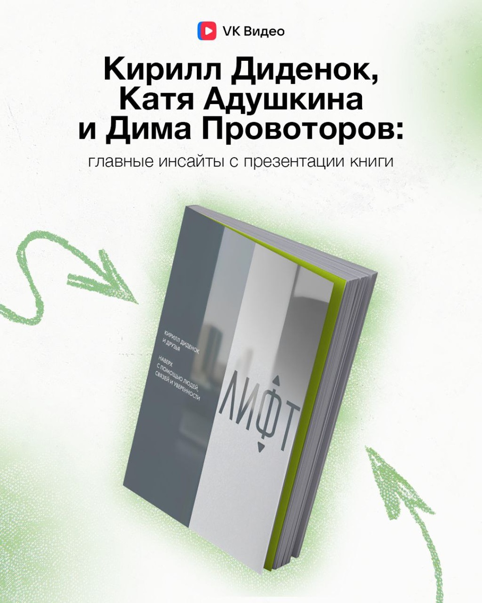 Лифт приоткрыл свои двери: главные инсайты эфира в VK Кирилл Диденок, Катя Адушкина и Дима Провоторов на онлайн-презентации книги «Лифт: наверх с помощью людей, связей и уверенности» поделились своими мыслями о нетворкинге, дружбе и психотерапии. Листайте карточки! А если не успели и хотите посмотреть трансляцию в записи, переходите по ссылке 🕊 💚 Подписаться на DIDENOK TEAM