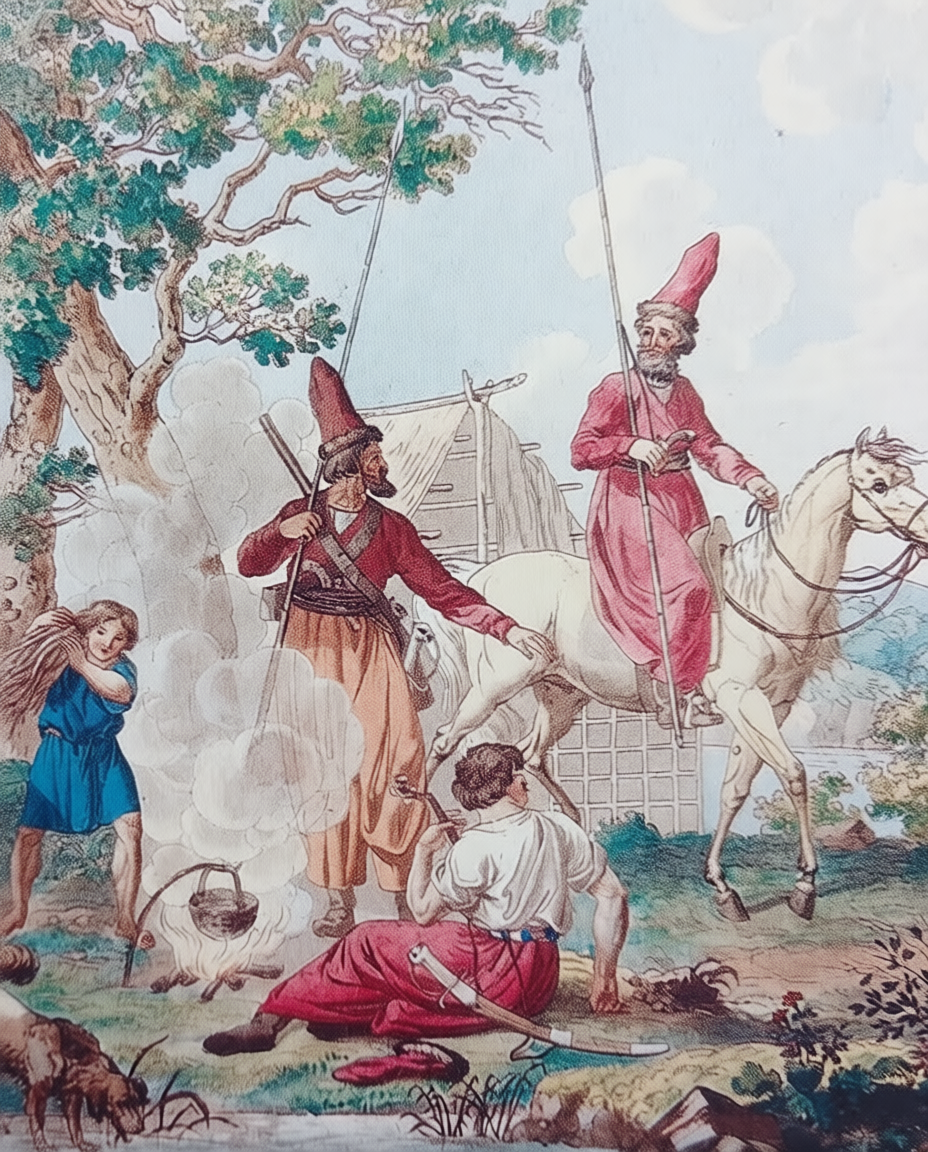 В бескрайних степях Урала, где ветер гуляет свободно, а история высечена в суровых чертах лиц, головной убор казака был больше, чем защита от непогоды. Это была его визитная карточка, молчаливый рассказчик о звании, заслугах и происхождении. Каждая шапка в этом краю — страница летописи, сплетённая из овечьей шерсти, сукна и непоколебимого духа. Высокий страж степей: от тумака к папахе Истоки уральской казачьей моды уходят в XVI век. Тогда главным спутником воина был тумак — высокая шапка-конус из овчины, обтянутая, как правило, малиновым сукном. Он был практичен: мех внутрь грел, а опушка вокруг головы защищала от ледяных ветров. В старинной песне пели: «Казаки не простаки. Вольные ребята, на них шапки-тумаки». Это был символ доброго достатка и свободного статуса. Со временем тёплого гиганта сменила знаменитая папаха. Но уральские мастера шили её особенной — стрелой взмывающей вверх, порой до 30 сантиметров. Такой высоты не было больше нигде. Верх по-прежнему кроили из алого, малино