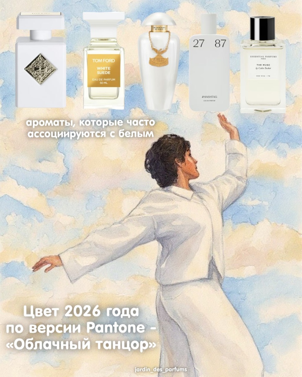 Только что прошла новость: Цветом 2026 года по версии Pantone назван «облачный танцор» — нейтральный белый. «Нейтральный белый, приносящий спокойствие, ясность и творческое дыхание в шумный мир», — говорится в сообщении Pantone в X. Initio Musk Therapy Tom Ford White Suede Essential Parfums The Musc 27 87 # Hashtag The Merchant of Venice My Pearls Предлагаю аромабокс на данную животрепещущую тему.