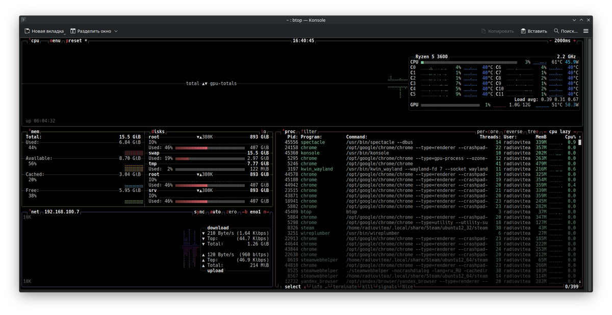 - если LA заметно растет при активной дисковой нагрузке (резервное копирование, тяжёлые запросы к БД), стоит посмотреть на I/O и настройки хранения.