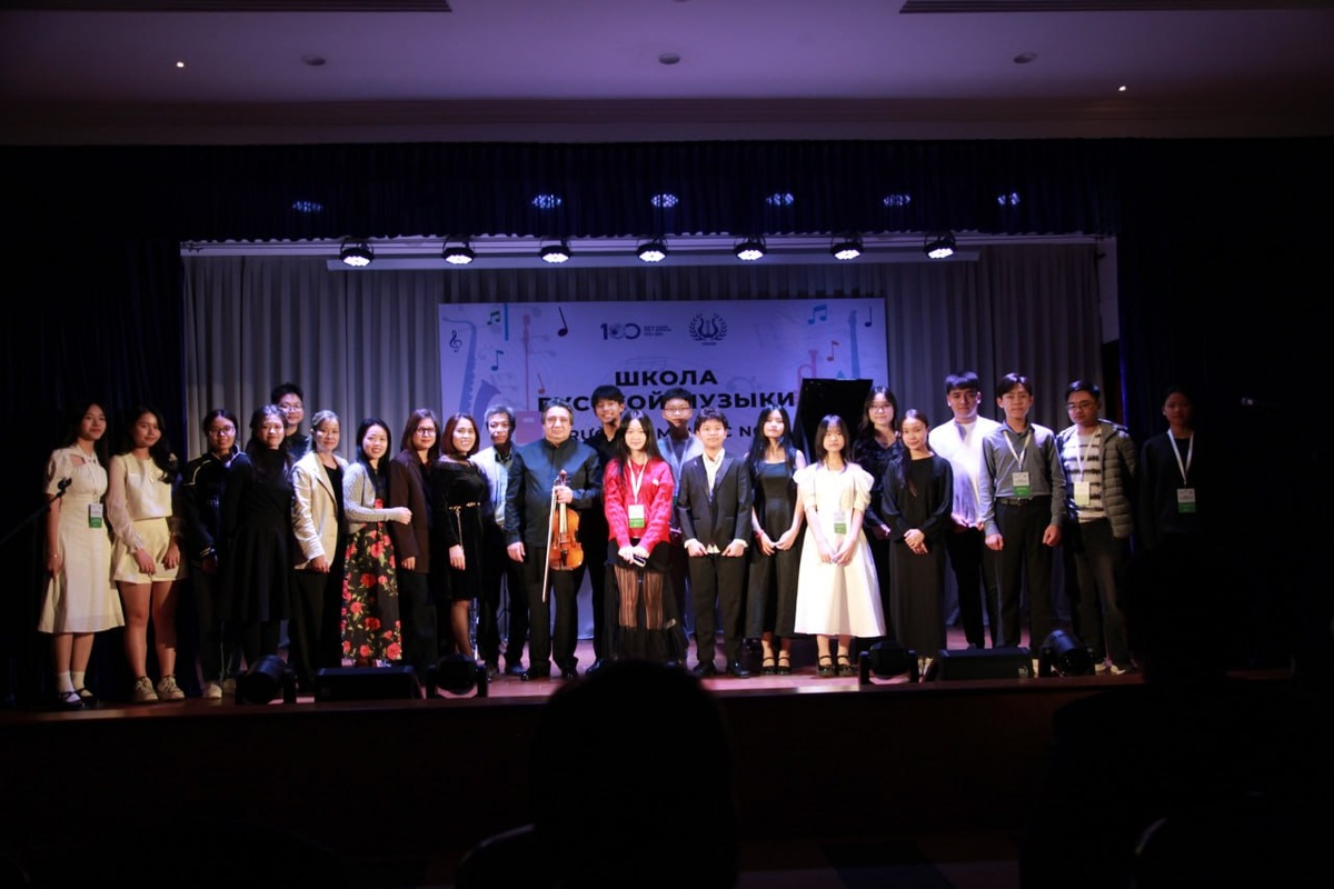 Заключительный торжественный вечер проекта «Школа русской музыки» состоялся в концертном зале Российского центра науки и культуры в Ханое. 👏 Совместное показательное выступление российских педагогов и отличившихся студентов Вьетнамской национальной музыкальной академии вызвало большой ажиотаж у публики. Пространство едва вмещало всех желающих прикоснуться к искусству! В адрес Российской академии музыки имени Гнесиных, Вьетнамской национальной музыкальной академии, Россотрудничества и Русского дома в Ханое прозвучало много слов благодарности. 🎶 Торжественный вечер стал кульминацией поездки, включавшей в себя мастер-классы и концерты. В течение нескольких дней со студентами занимались профессора Юрий Богданов (фортепиано), Дмитрий Хахамов (скрипка), Мария Власова (аккордеон), Наталия Бражникова (камерный ансамбль), Владислав Вальс (саксофон), заведующая кафедрой эстрадно-джазового пения Ксения Политковская (эстрадно-джазовое пение), доцент кафедры инструментального джазового исполн