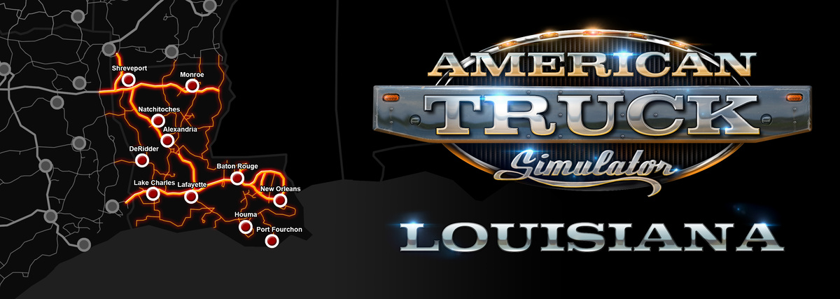 Ожидание наконец-то позади — мы рады приветствовать вас в штате Пеликанов! DLC Louisiana для American Truck Simulator выходит сегодня, и пора отправляться в путь туда, где вас ждут заводи, исторические города и влажный южный воздух. Дополнение Луизиана выходит сегодня в 21:00 МСК С момента анонса развитие дополнения было долгим и насыщенным процессом, и сегодня мы рады представить его вам, нашему #BestCommunityEver. Легендарные заливы, исторические города, уникальные индустрии и огромное количество новых грузов — всё это ждёт за рулём вашего грузовика. Чтобы вам легче было сориентироваться, взгляните на полную карту дополнения, показывающую все города, поселения и дороги. Мы также добавили множество новых уникальных объектов и точек интереса — обязательно прочитайте полный блог, чтобы не пропустить детали. Что ждёт вас в штате Пеликанов: Исследуйте 11 городов, включая Новый Орлеан, Батон-Руж и Шривпорт. Посетите знаковые места: Капитолий Батон-Ружа, Супердоум в Новом Орлеане, Готичес