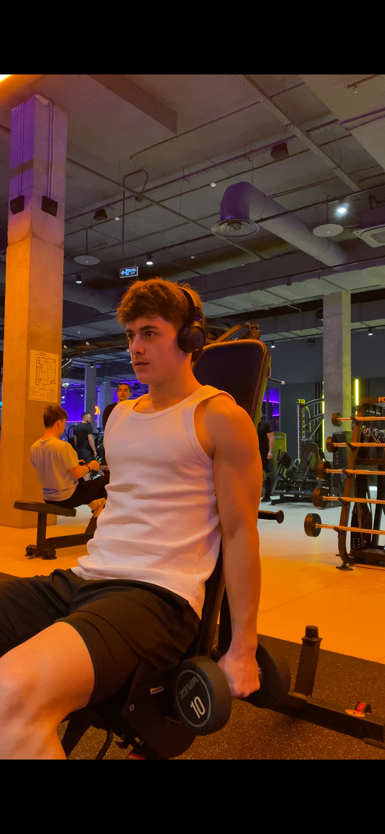 Всем доброго времени суток сегодня расскажу и покажу про тренировку плеч в зале. Перед началом тренировки я хорошо разминаюсь и прогреваю плечи чтоб не было травм и очень советую чтоб вы тоже предерживались такому. Первое упражнение это махи сидя, почему сидя все просто, тут не будет колебания тела и различных рывков, вам нужно будет всего навсего сделать мах и все. Это наше начальное положение И все просто делаем мах ничего больше другого делать не нужно. Я выполняю 3 подхода по 7-8 раз, с каждым новым подходом увеличиваю вес. Следующее упражнение на заднюю дельту для этого нужен будет тренажер кроссовер, нужно взять две рукоятки, установить примерно на уровне плеч или головы кому как удобно, беремся за рукоятки делаем шаг назад обязательно фиксируем лопатки чтоб у нас растягивалась задняя дельта, тянем к себе рукоятки все делаем плавно не бросая и фиксируем обязательно плечи. Я выполняю по 3 подхода каждый раз увеличивая вес. Заключительное упражнение это жим гантелей. В этом