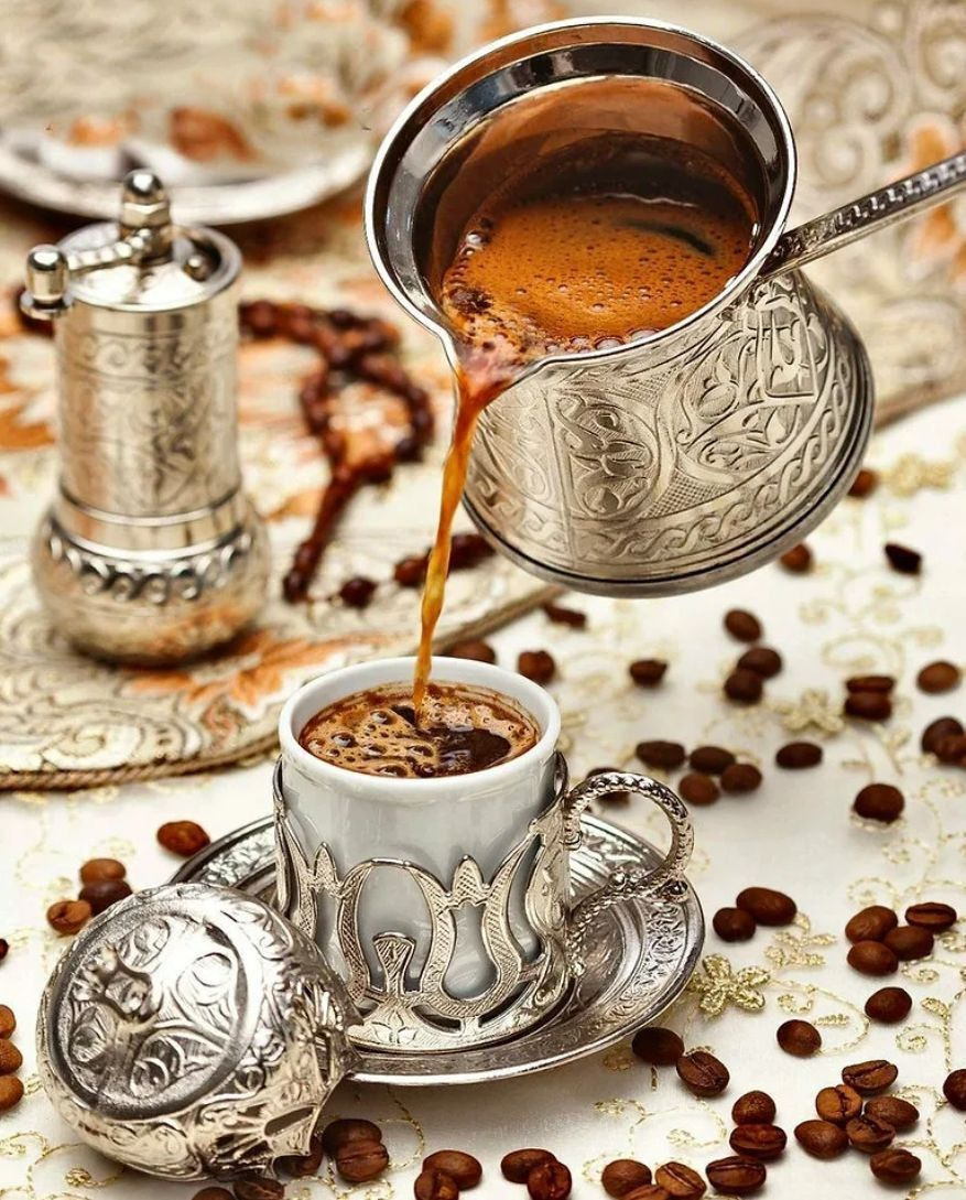 Сегодня, в этот день, мы празднуем не просто напиток. Мы празднуем ритуал предсказания будущего по кофейной гуще, которая всегда говорит правду, особенно если вам предрекают путешествие или встречу с темноволосым мужчиной (гуща почему-то обожает темноволосых мужчин)😂. Турецкий кофе — это не про бодрость с утра. Это про то, чтобы сесть, замедлить время и понять, что жизнь прекрасна, даже если на дне чашки осталась горькая осадочная порция. Что отличает турецкий кофе от всех остальных? Краткий ликбез с несчастными случаями Посуда. Он варится в джезве (турке).🧉 Это такая маленькая симпатичная посудина с длинной ручкой, которая намекает: «Я раскалена докрасна, не трогай меня, пока я не успокоюсь». Забыть об этом — получить бесплатный сеанс тату в стиле «ожог первой степени». Помол. Зерна должны быть мелко-мелко помолоты, в идеале — до состояния пыли, которая вызывает подозрения у таможни. Если ваш кофе похож на песок — это уже неуважение к традициям. Нужно, чтобы он был как тальк для