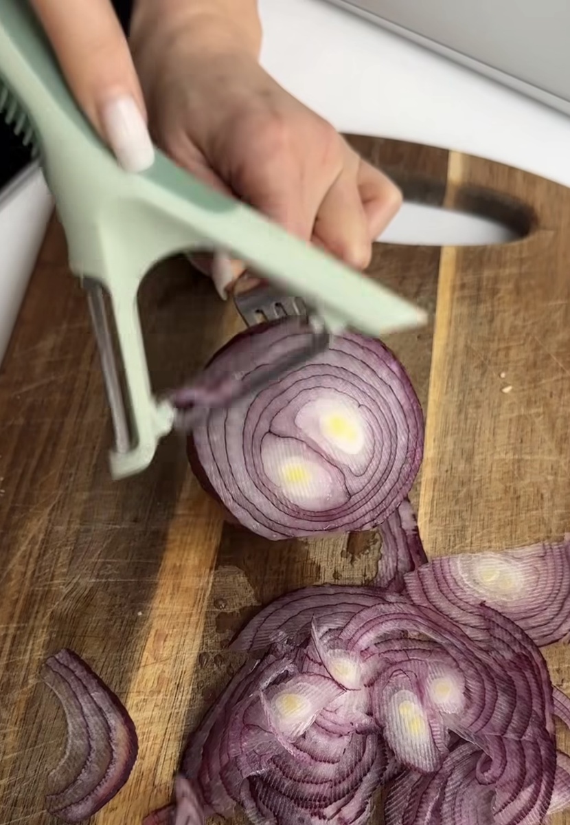 1. Первый лайфхак с луком. Лайвхак, который реально работает. Быстро и очень тонко нарезать лук можно чистилкой для овощей 🔥 2. Чтобы исправить пересоленный суп, насыпьте в марлю рис, опустите сверток в кастрюлю с супом и проварите в течение 20–25 минут. За это время крупа впитает лишнюю соль. 3. Чтобы картофельное пюре было однородным, слейте воду после варки, снимите крышку и набросьте на кастрюлю полотенце. Примерно через 10 минут оно вберет в себя влагу, потом картофель можно разминать. 4. А вы знали про этот кулинарный лайфхак с жареной картошечкой?Оказывается, что если перед жаркой добавить столовую ложку муки в горячее масло, перемешать и потом уже добавить картошечку, то она получается хрустящая снаружи и мягкая внутри. А главное, что она не разваливается в кашу, а получается красивой и вкусной. 5. Быстрый способ охладить любой напиток — обернуть бутылку влажной тряпкой или полотенцем и положить в морозилку.