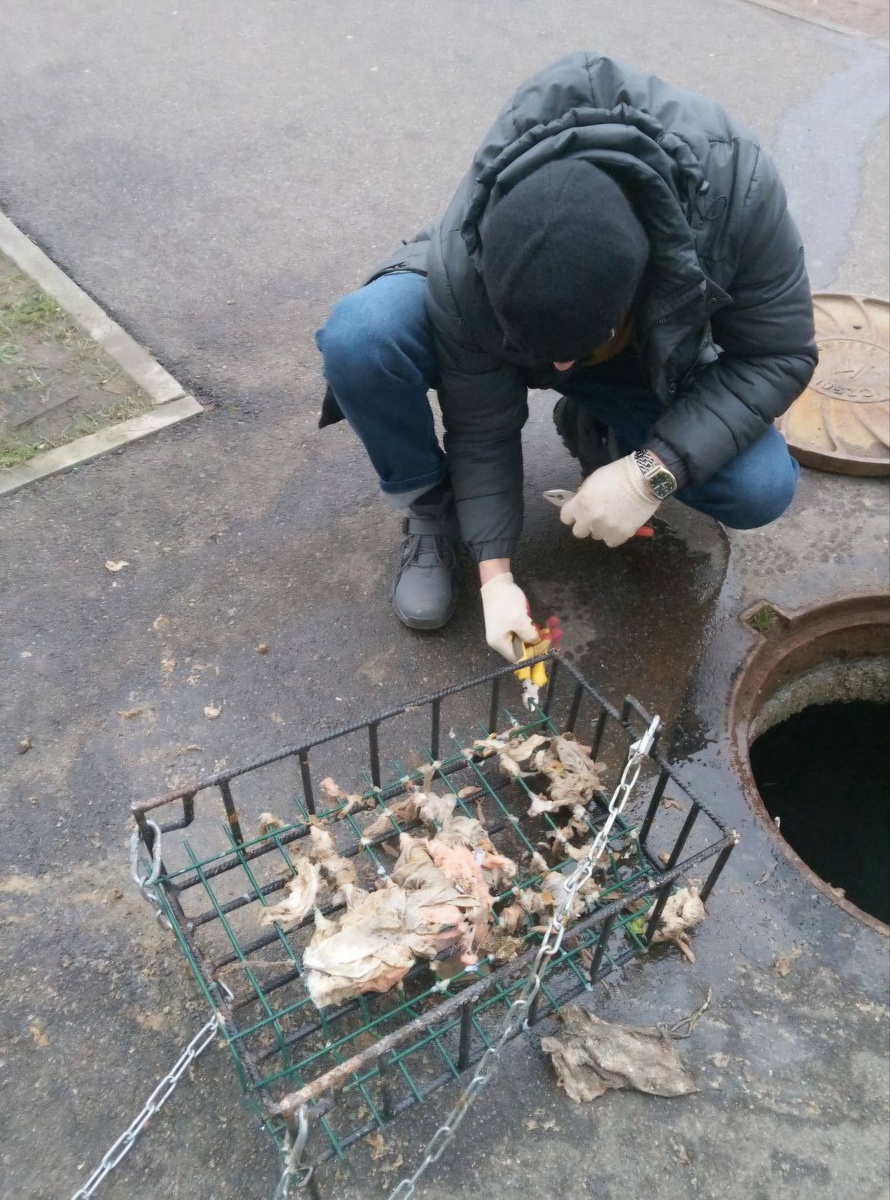 Первые результаты эксперимента наглядно: решётка «поймала» посторонние предметы в канализации в ЖК «Новая Охта