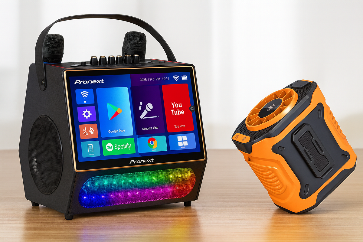 Экран диагональю 13,3 дюйма демонстрирует текст песен в высоком разрешении, а система усиления выдаёт до 800 Вт пиковой мощности, создавая насыщенный объёмный звук. Встроенный аккумулятор поддерживает до десяти часов автономной работы, что позволяет устраивать вечеринки без привязки к розетке.