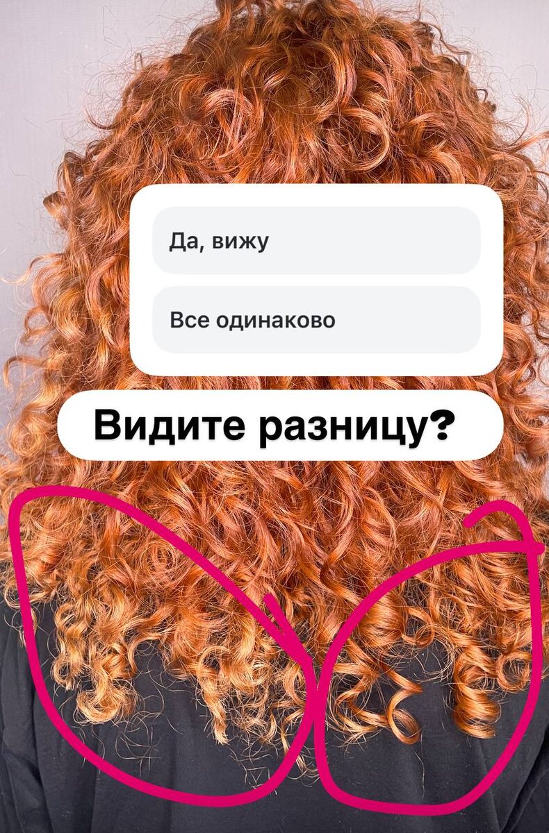 ВАЖНЫЙ ПОСТ ‼️‼️‼️ Кто был у меня на обучении, помнит слайд с тест-прядью на краску high flash На этой картинке еще одно подтверждение ✅ моей теории У волос есть свой ресурс и он не бесконечен Слева завивка выполнена по всей длине, справа - с изоляцией