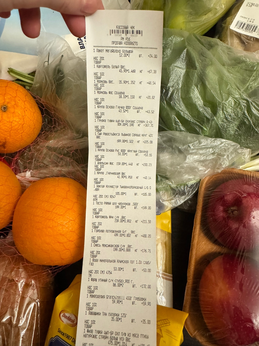 Закупаемся в разных магазинах, вот в этот раз в Яблоке - это местный гипермаркет. Всё зависит от того, есть ли время туда поехать, что хочу купить и т. д. Сразу покажу чек, а то вдруг кому-то интересно, какие в Крыму цены.