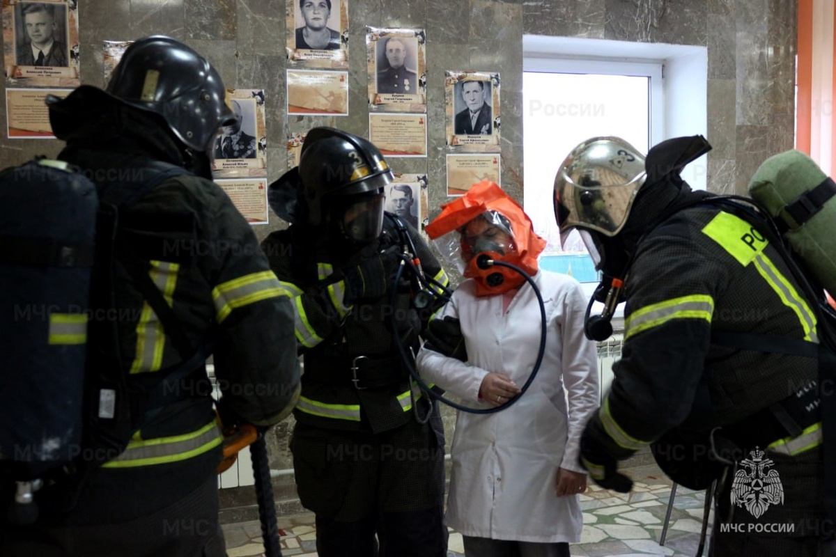 В Тульском областном клиническом кардиологическом диспансере прошли масштабные противопожарные учения. По легенде, возгорание произошло на втором этаже в столовой из-за короткого замыкания. Персонал оперативно эвакуировал более 100 пациентов, однако одна медсестра осталась в здании. Задача спасателей 3-й пожарно-спасательной части заключалась в поиске и спасении «пострадавшей», а также в ликвидации очага возгорания. Звено газодымозащитной службы в полной экипировке провело разведку, нашло женщину на втором этаже и с помощью специального устройства вывело её на свежий воздух. После этого условный пожар был оперативно потушен. Тренировки направлены на отработку чётких действий персонала и подразделений МЧС в случае реальной чрезвычайной ситуации, а также на улучшение взаимодействия между службами. По информации пресс-службы МЧС Тульской области