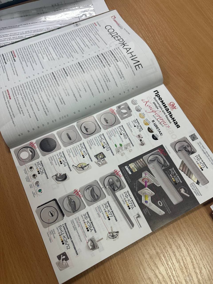 Мини каталог с фурнитурой "Конфетти" На страницах журнала "Дверное дело".