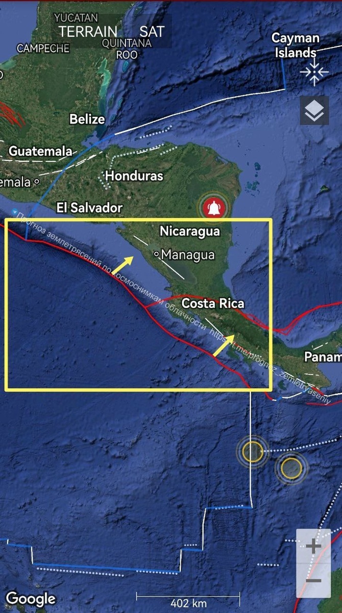 Есть вероятность землетрясения М6+ по линии Панама-Сальвадор в течение 9 дней ==== There is a possibility of an M6+ earthquake along the Panama-El Salvador line within 9 days.