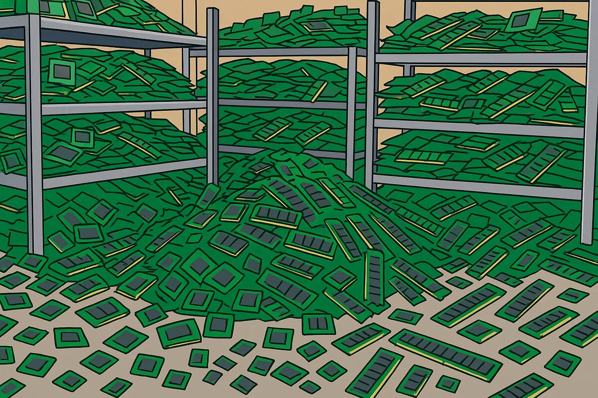 Ситуация резко поменялась, когда карантин закончился. Люди, вернувшиеся в офисы, к путешествиям и живому общению, перестали с прежним ажиотажем обновлять устройства, а компании и дата-центры начали экономить и откладывать апгрейды. Результат оказался предсказуемым: фабрики, запущенные в период бума, продолжали штамповать чипы, а спрос ощутимо снизился. Итог: предложение многократно превысило спрос, и склады оказались забиты под завязку.