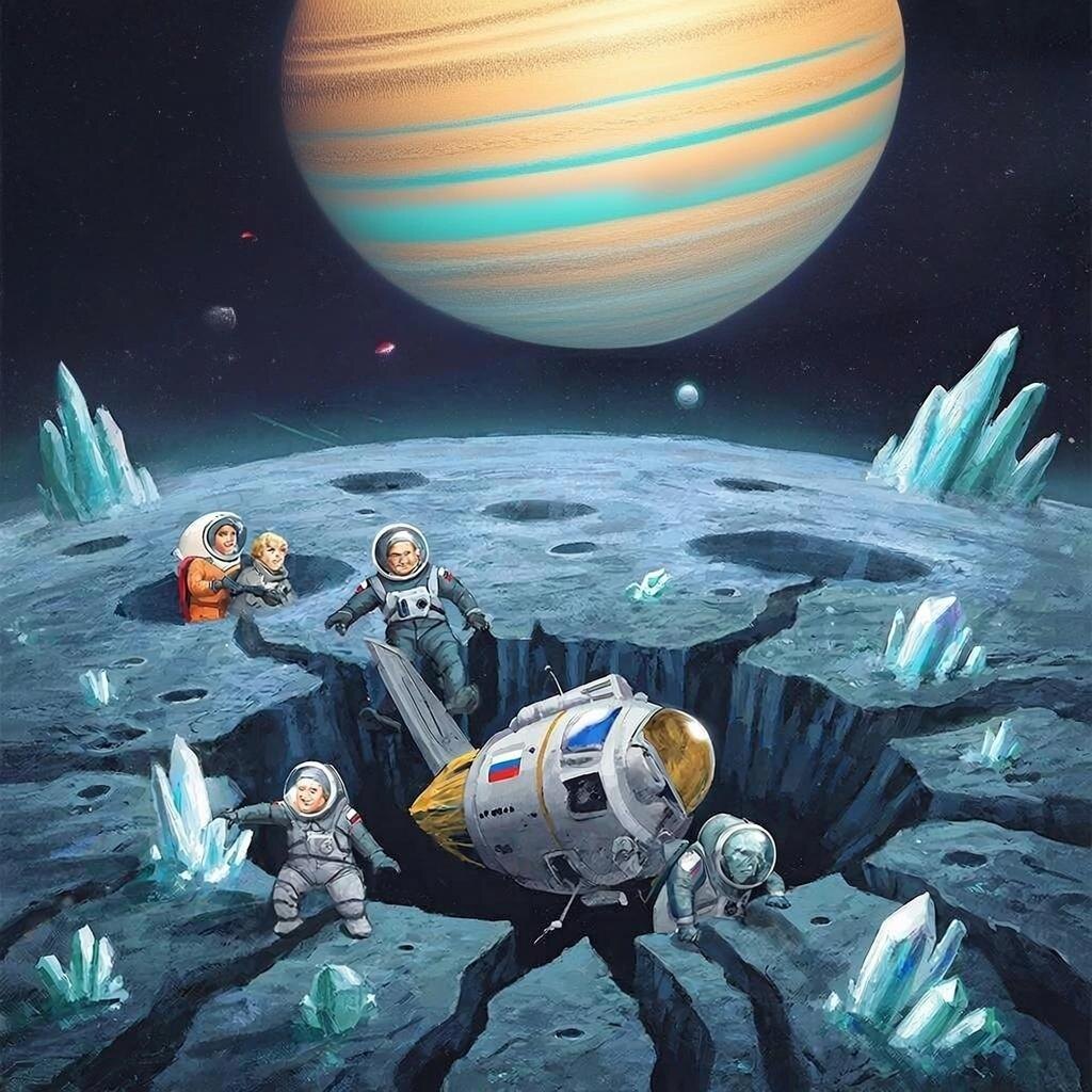 Глава первая: Долгое путешествие Пространство было бесконечным и пустым, словно гигантская черная бездна, готовая поглотить любого смельчака, осмелившегося бросить ей вызов. Однако группа отважных исследователей была готова принять этот вызов, ведь перед ними стояла задача изучить загадочный спутник, расположенный далеко за пределами Солнечной системы. Спутник имел огромные размеры, превышающие даже Юпитер, и вращался вокруг звезды класса G, расположенной в созвездии Ориона. Ученые назвали его «Гигаспутником», подчеркивая его внушительные габариты и уникальную природу. Команда состояла из шести человек: капитана корабля Ивана Петровича Смирнова, бортового инженера Сергея Ивановича Васильева, биолога Анны Сергеевны Коваленко, геолога Дмитрия Николаевича Громова, астронома Екатерины Александровны Романовой и медицинского специалиста Андрея Владимировича Чернышёва. Их корабль, оснащенный новейшими технологиями, двигался сквозь пространство, используя гиперпространственный двигатель