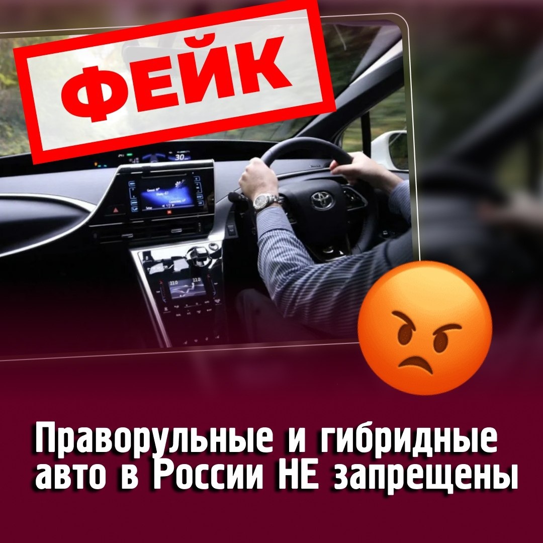 В сети распространяется фейковая новость о запрете праворульных и гибридных автомобилей. Это неправда! 🚘 Росаккредитация полностью опровергает эту информацию. Судебный процесс во Владивостоке, ставший поводом для слухов, рассматривал исключительно вопрос об аннулировании разрешительных документов у одной частной компании. Решение суда ещё не вступило в силу и не меняет правил. Ввоз и эксплуатация праворульных и гибридных автомобилей в России остаются полностью законными.