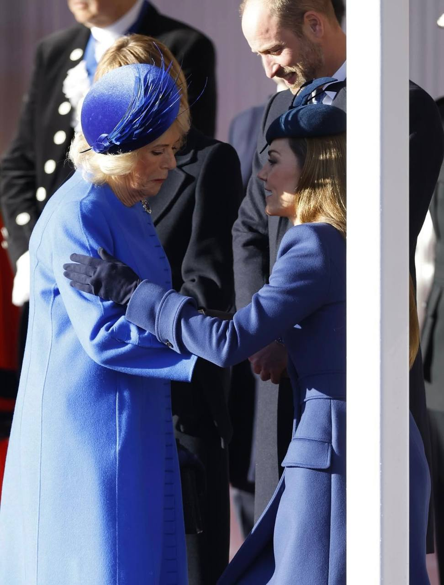 Ну вот, дожили до королевского почти скандала: королева Камилла и принцесса Уэльская вышли к публике в очень похожих синих нарядах во время официального приёма президента Германии Франка Вальтера Штайнмайера. В королевской семье каждый оттенок несет какое-то сообщение: черный - для траура, белый - для дипломатии, красный - для силы, а синий - для власти. Именно поэтому, когда королева Камилла и принцесса Уэльская Кейт Миддлтон вышли в одинаковых, весь модный мир замер. В любой обычной семье это закончилось бы просто улыбкой, ну, совпали цвета и совпали, но у королевских всё сложнее, потому что одежда там считается частью протокола и визуального сообщения, а цвет подбирают так, чтобы не возникало конкуренции внутри группы. Эту идею особенно ярко обсуждали после документального проекта про Гарри и Меган, где Меган объясняла, что выбирала нейтральные оттенки, чтобы случайно не пересечься по цвету с более старшими членами семьи на общих мероприятиях. Это не каприз, а правило, уходящее кор
